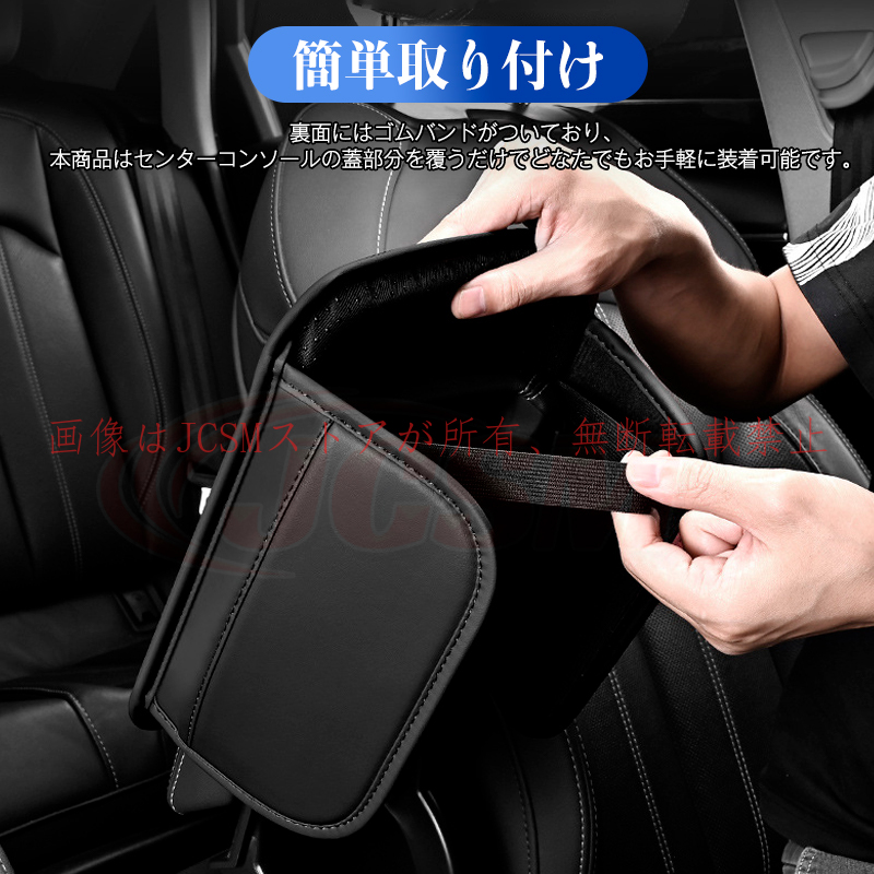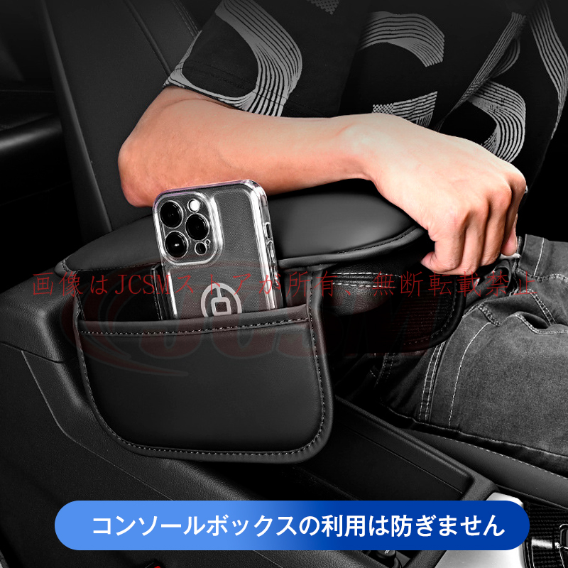 <br>アームレストカバー 肘掛けクッション ティッシュボックスとサイドポケット付き 車アームレストサポート 車 自動車 普通車 通気性抜群 滑り止め キズ予防 キズ隠し PUレザー 内装パーツ カーアクセサリー JCSM