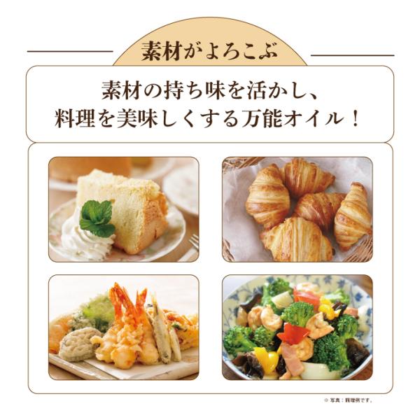 色も香りもほとんどありませんので普段使いの油として和・洋・中・製菓・製パンと