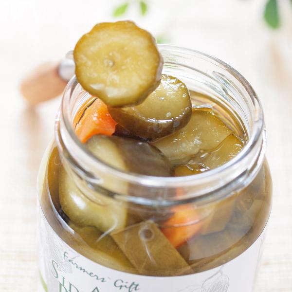 ビンごとキッチンに飾っておきたくなるようなピクルスです。