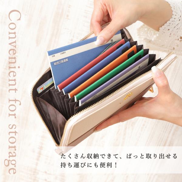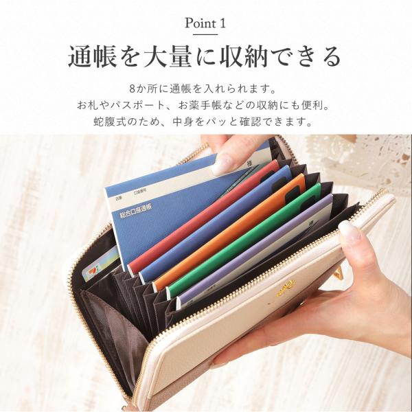 ●8か所に通帳を入れられます。お札やパスポート、お薬手帳などの収納にも便利。蛇腹式のため、中身をパッと確認できます。