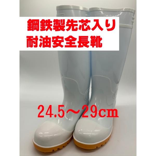 耐油安全長靴 白 24.5〜29cm PVC衛生長靴 食品工場 セーフティブーツ 鋼鉄先芯 ホワイト CB-310