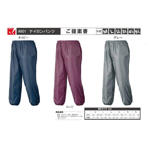 組み合わせ自由 ナイロンパンツ2着セット ネイビー・ブラック・エンジ・ブルー・グレー・イエロー ホワイト M、L、LL、3L、4L、5L ヤッケズボン アーヴァン 801