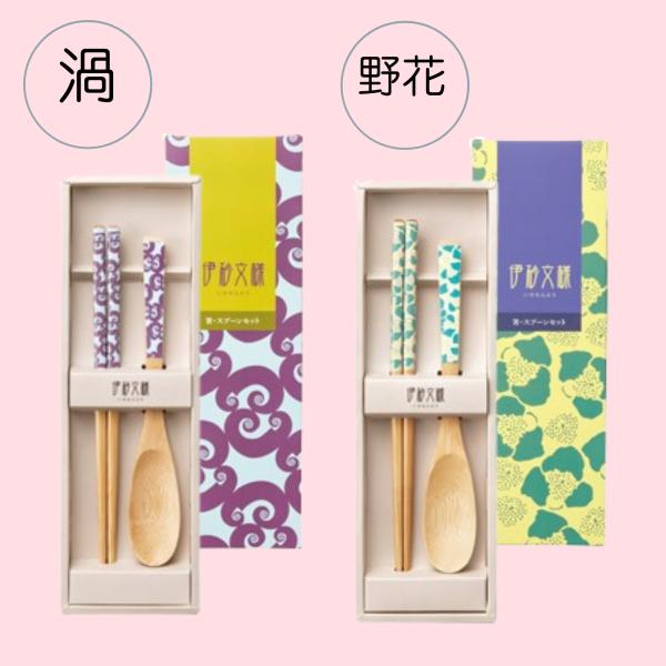 【単品販売】伊砂文様 箸・スプーンセット 天然竹 化粧箱入り|和柄 カトラリー ギフト 粗品 ノベルティ 法人向け