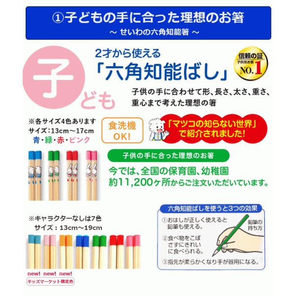 箸 子供用 六角知能箸 トレーニング 日本製 無地(キャラクターなし) すべらない竹箸 箸匠せいわ 日本製箸 13〜19センチ 7色 速達