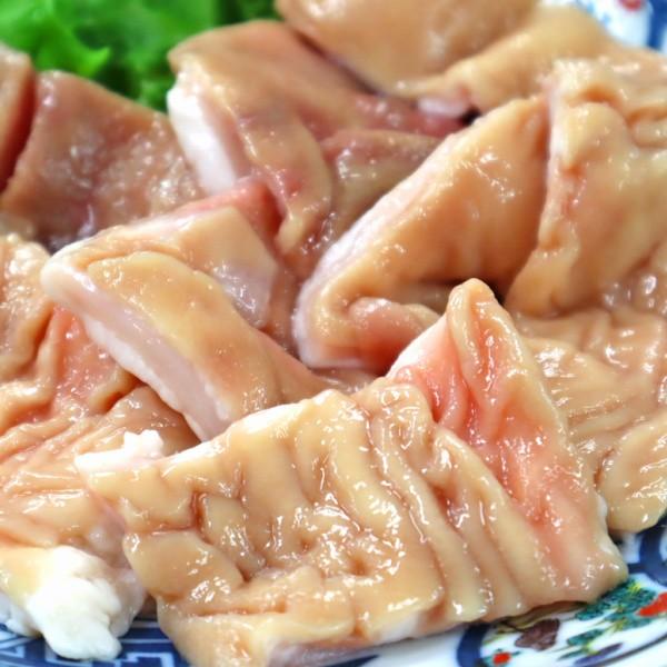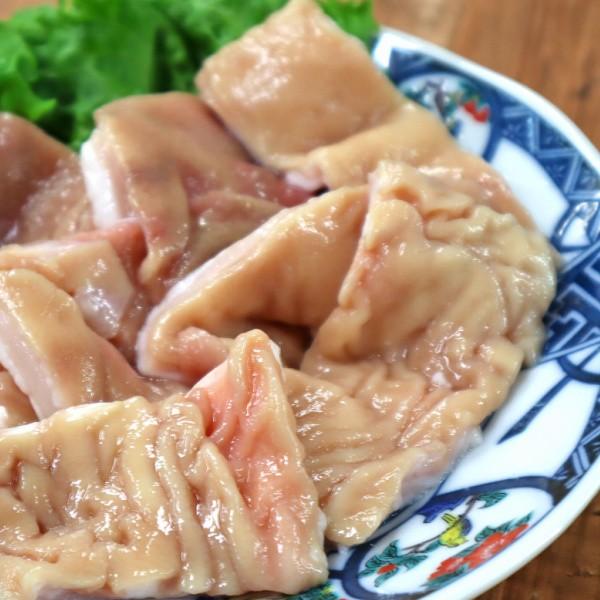 牛の第4胃です。プリップリッの脂のうまみが堪能できます。市販の味噌だれで味付けしてホルモン焼きやもつ鍋にも最適です。