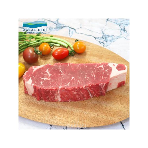 【不定貫】ニュージーランド産ブランド牛オーシャンビーフ、ストリップロイン約400g-約550g 厚み約3.8cm 6210円税込/kg/再計算