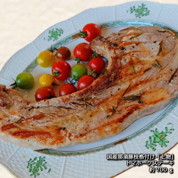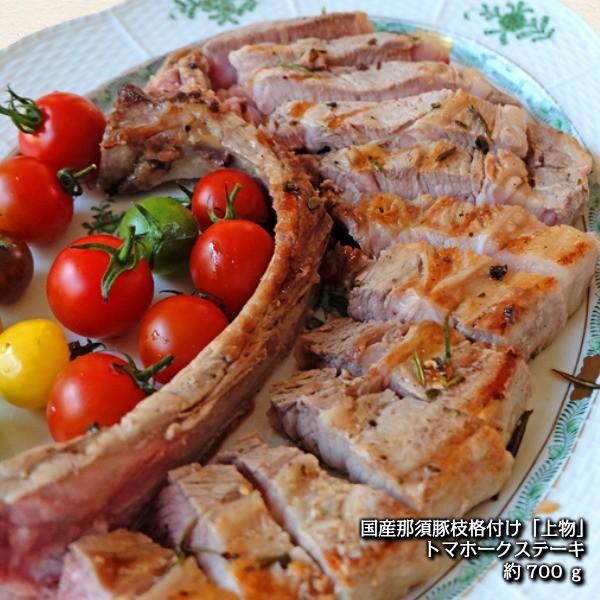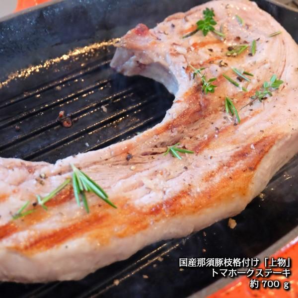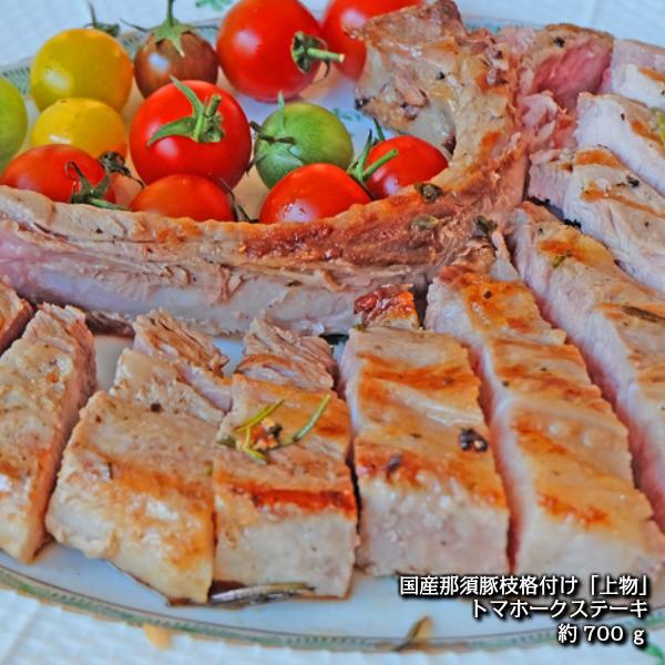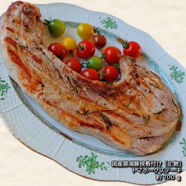 1度に2つの部位が味わえる国産那須豚トマホークステーキ約700g〜約800g 極厚 特大の骨付きステーキ pork tomahawk steak