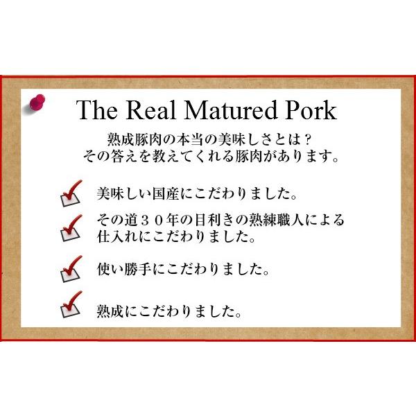 国産那須豚熟成骨付きロース肉。専門の職人が肉質を見極め市場から新鮮な枝肉で仕入れます。当店の豚肉等級はすべて上物のみ。その上物の豚肉を熟成しました。だから通常の国産豚とはレベルが違います。すでに数々の一流レストランに卸しているので自信があります。