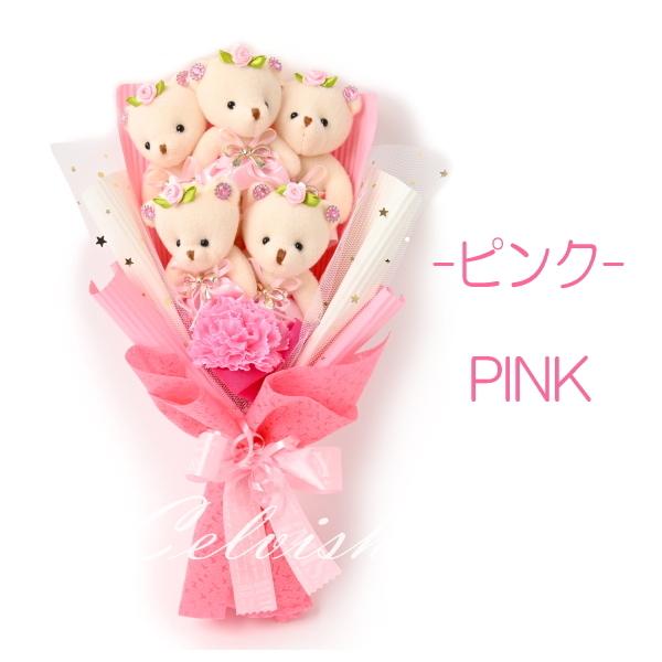 クマさんアレンジ 5くま束 クマの花束 誕生日 プレゼント 発表会 選べるメッセージカード ベアー ぬいぐるみ プリンセス ドレス ベア ぬいぐるみ