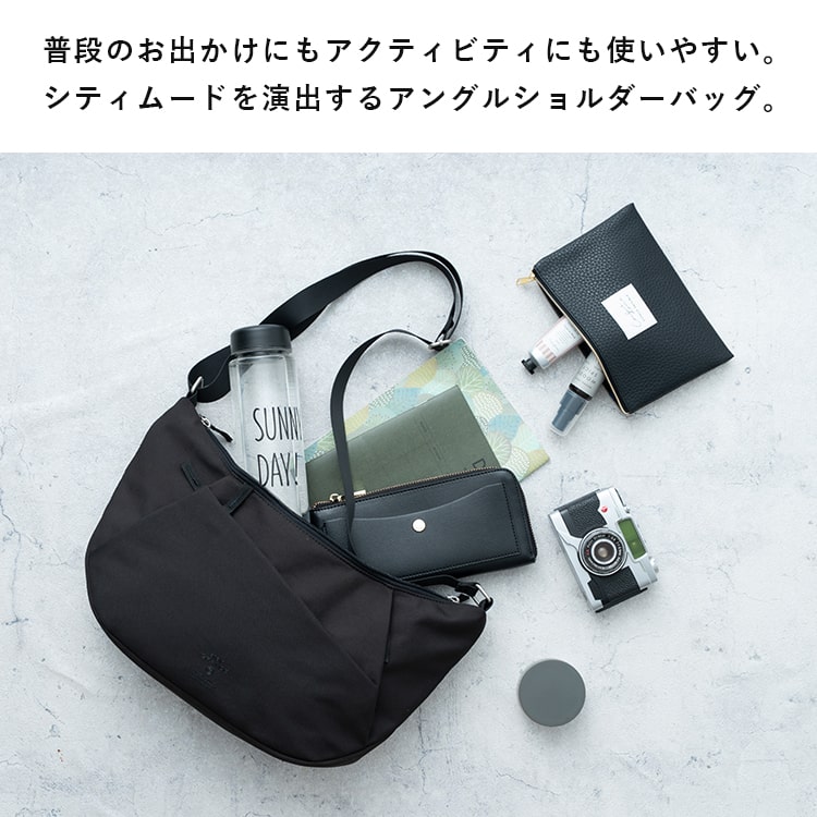 スタイリッシュなフォルムが目を惹くアングルショルダーバッグ。。