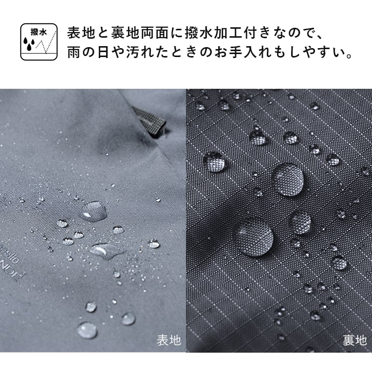 表地と裏地両方に撥水加工を施したことで、お天気の変化にもスマートに対応。