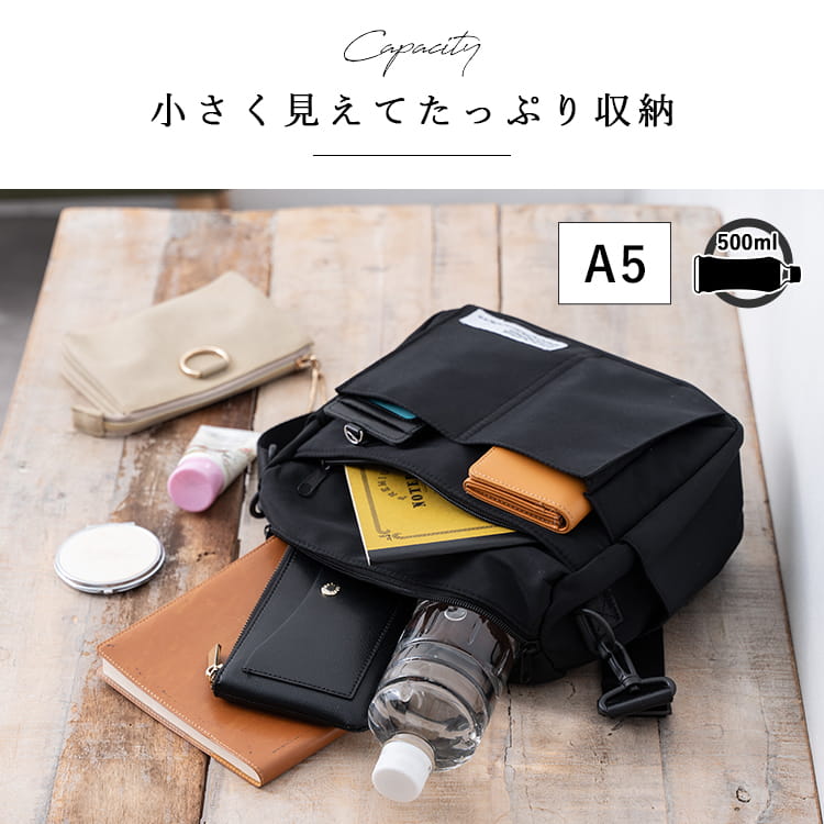 コンパクトなのに収納力◎な多ポケットショルダーバッグ。