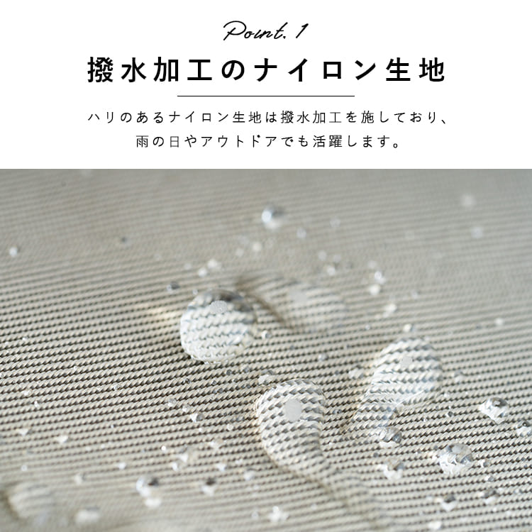 はっ水加工なので雨の日やアウトドアでも安心して使えます。