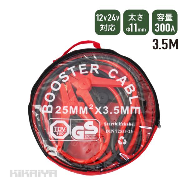 ブースターケーブル 3.5m 300A バッテリー ケーブル 12V 24V 25sq 11mm アウトレット特価 KIKAIYA