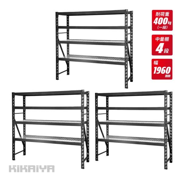 スチールラック 4段 3台セット ボルトレス ブラック ワイド幅 業務用 収納棚 中量棚 メタルラック 耐久性あり 400kg