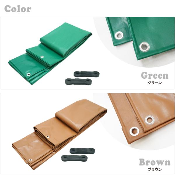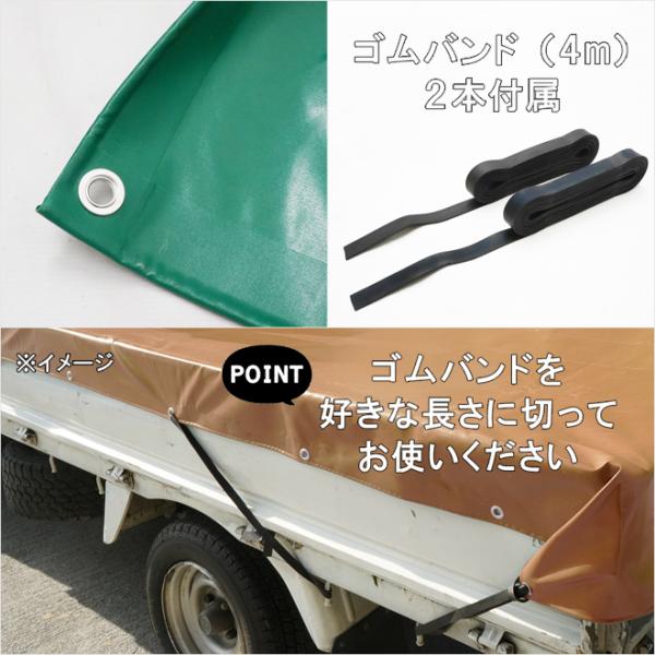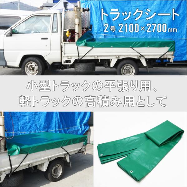 トラックシート 2.1×2.7m 2号 ゴムバンド2本付き 荷台カバー エステル帆布 完全防水 強度抜群 小型トラック用 ダブルキャブ 軽トラック グリーン ブラウン
