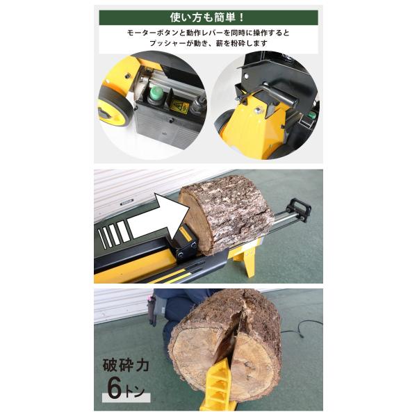薪割り機 6トン 電動 まきわり ログスプリッター 4分割カッター付き 薪割機 油圧式 「すご楽」 KIKAIYA
