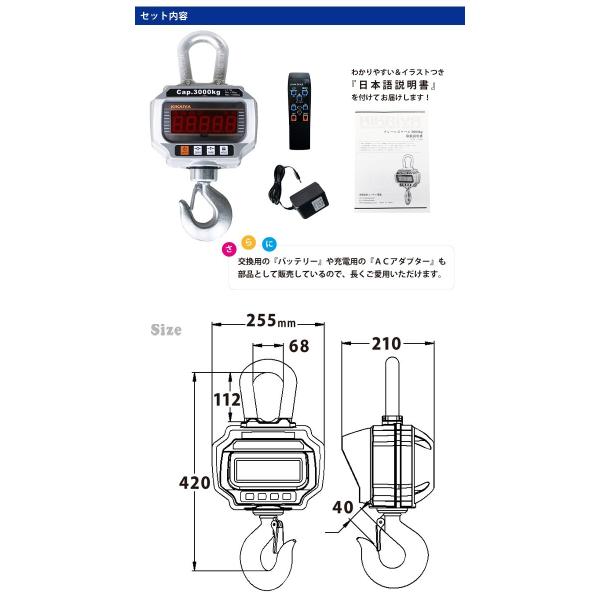 クレーンスケール 3000kg デジタル吊りはかり 計量器 1年保証 KIKAIYA