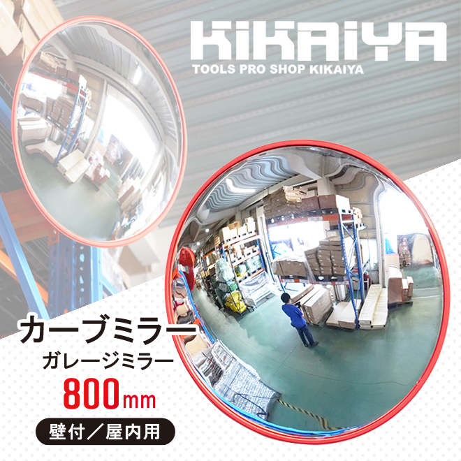 カーブミラー 800mm 丸型 ガレージミラー 壁付 屋内用 コーナーミラー 防犯ミラー 取付け金具付き KIKAIYA