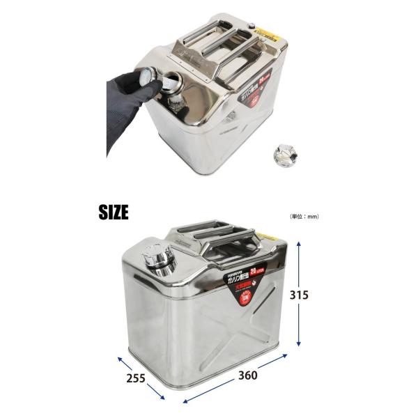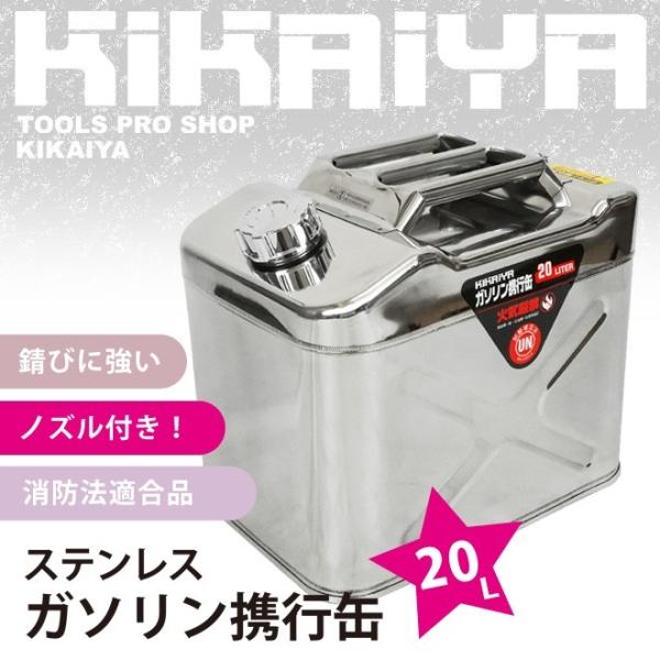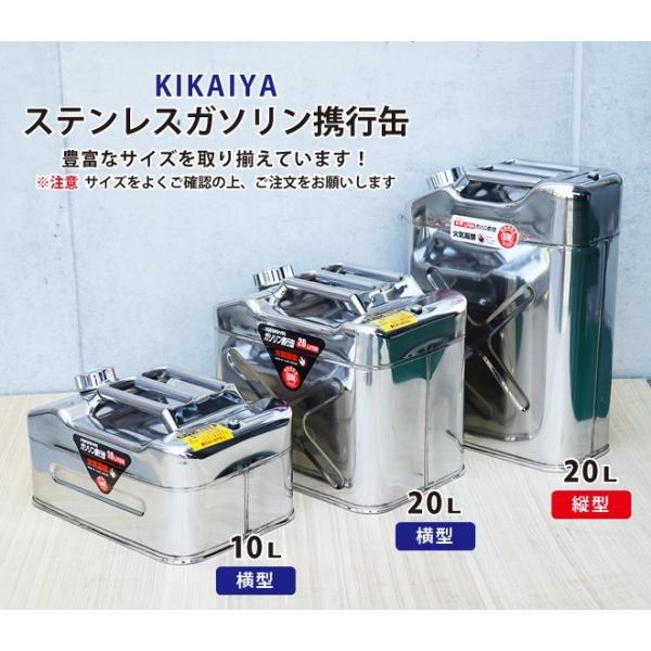 ガソリン携行缶 ステンレス 20L ガソリンタンク ジェリカン 消防法適合品 横型 KIKAIYA