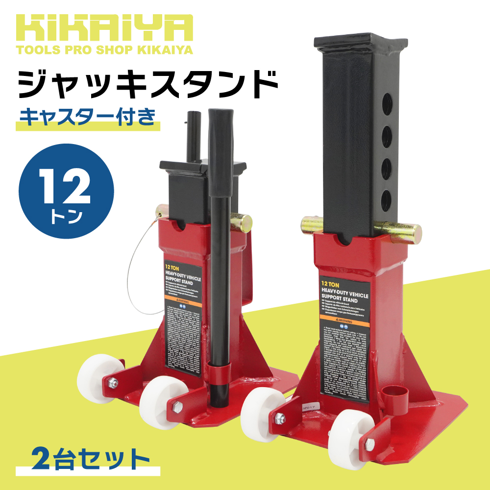 ジャッキスタンド 12t キャスター付き 2台セット 5段階 318〜470mm 38mm間隔 2基 馬ジャッキ KIKAIYA