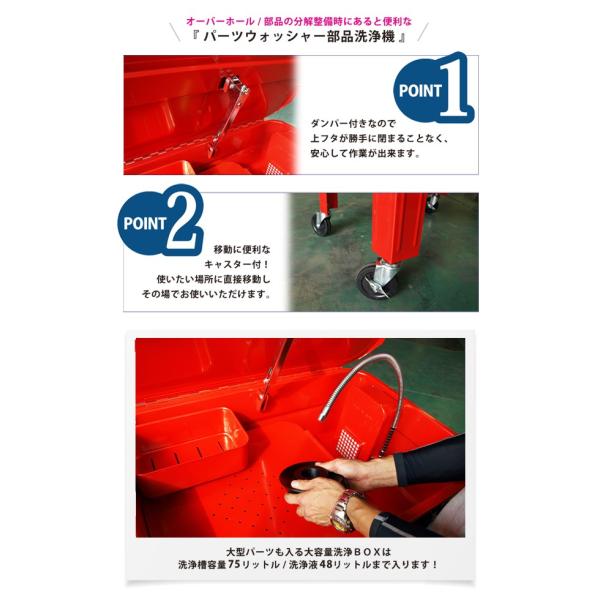 パーツウォッシャー キャスター付 部品洗浄機 部品洗浄槽 電動ポンプ付 洗浄台 認証工具 KIKAIYA