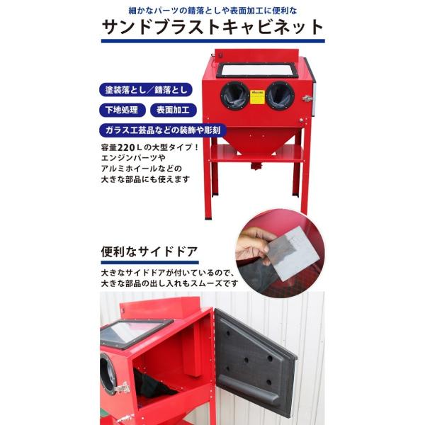 サンドブラスト 220L スタンド付 LEDライト付き 大型 サンドブラストキャビネット サンドブラスター KIKAIYA
