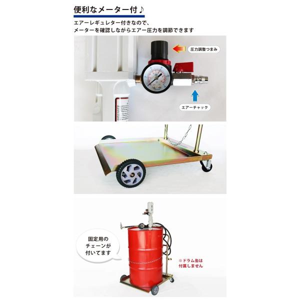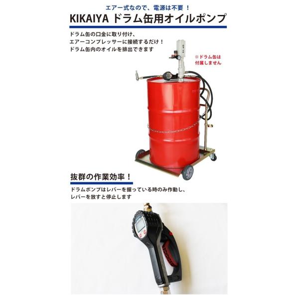 オイルポンプ エアー ドラム缶用 オイル流量計 オイルガン 台車あり 6ヶ月保証 KIKAIYA