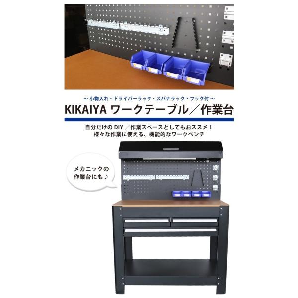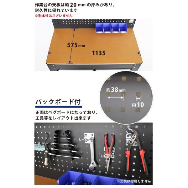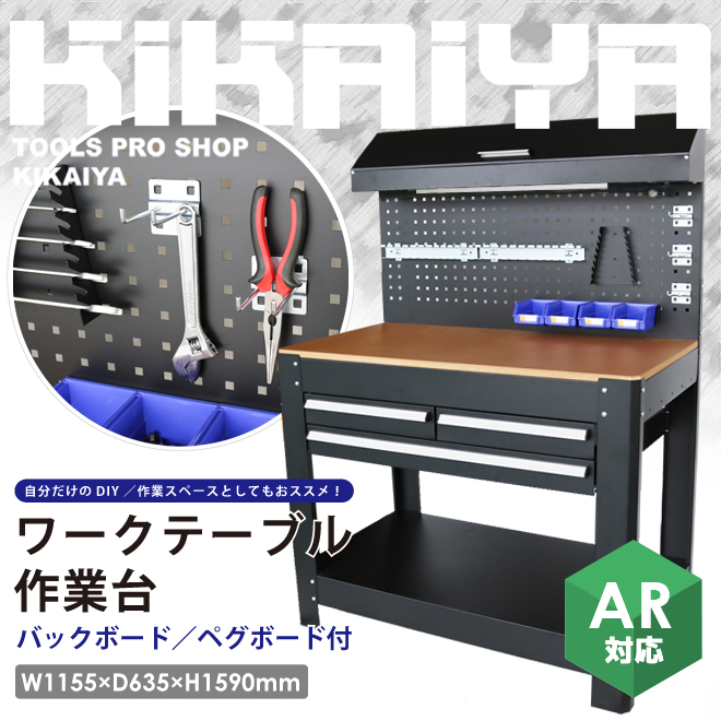 ワークテーブル バックボード付 業務用 作業台 ワークベンチ 引き出し ライト付 ペグボード W1155×D635×H1590mm KIKAIYA