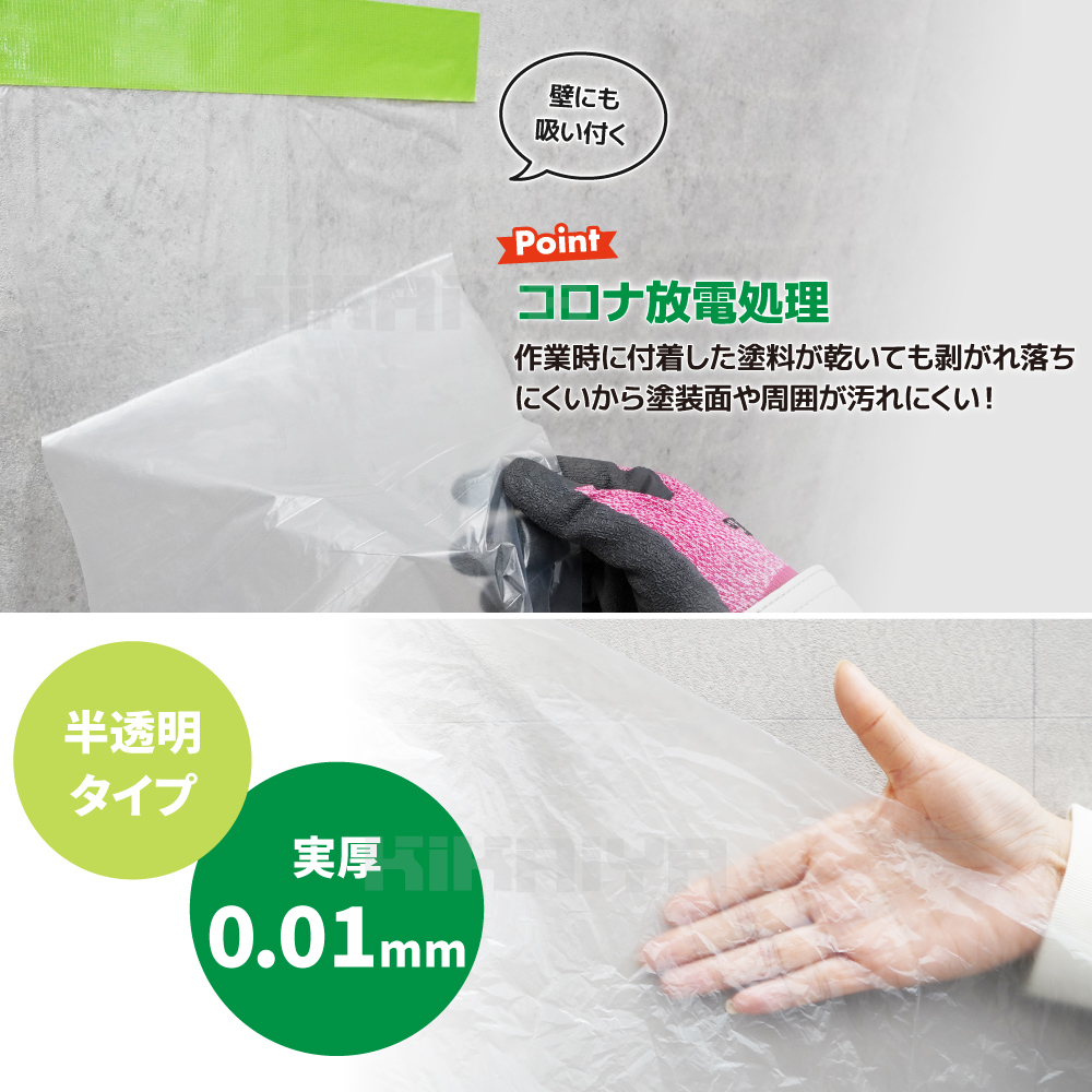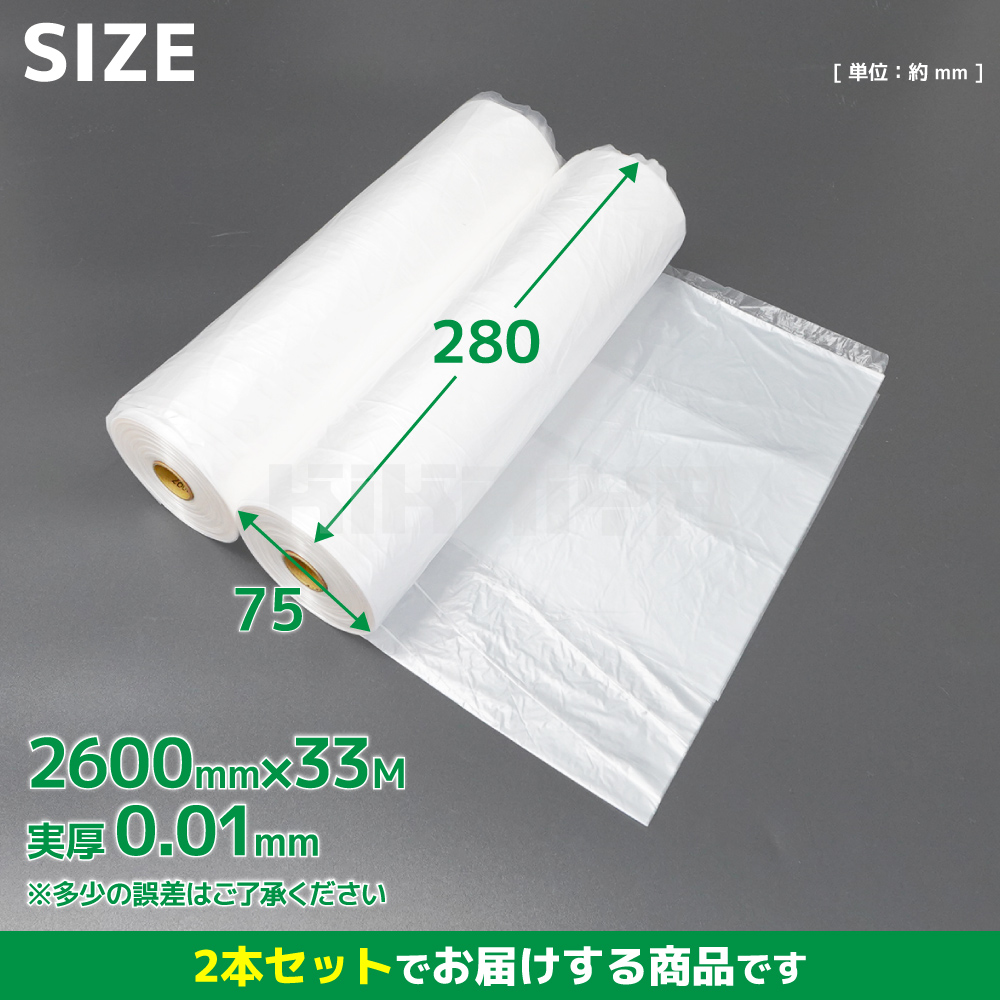 塗装養生シート コンパクト養生シート 幅2600mm 33m巻 2本セット コロナ放電処理 半透明 塗装 内装 改装 工事