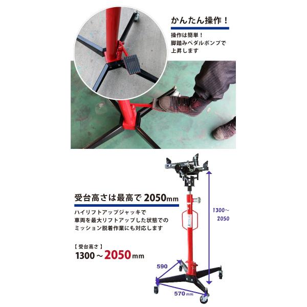 ミッションジャッキ300kg 油圧式トランスミッションジャッキ 6ヶ月保証 KIKAIYA