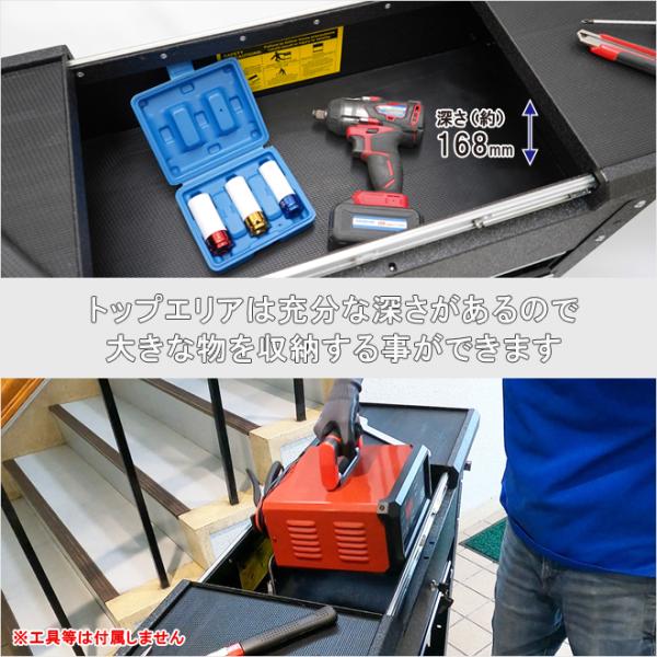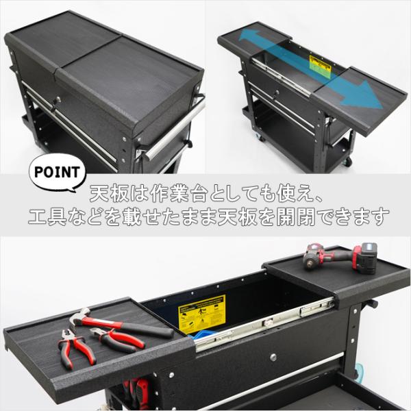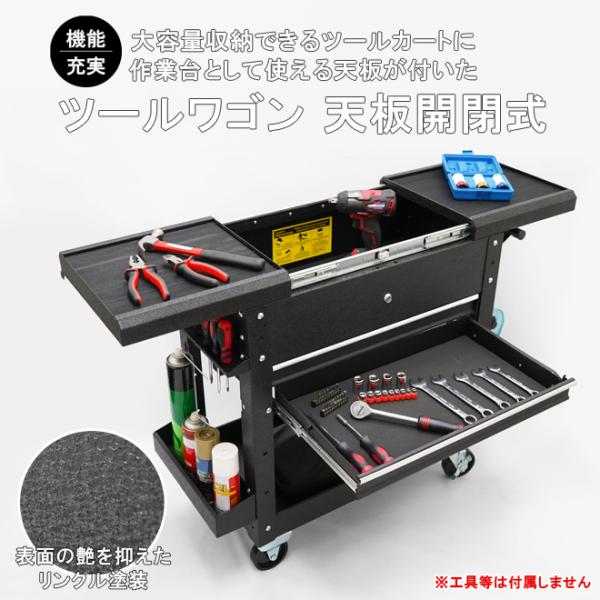 ツールワゴン ツールカート 作業台 スライドトップ 天板開閉式 リンクル塗装 ブラック ドライバー挿し KIKAIYA