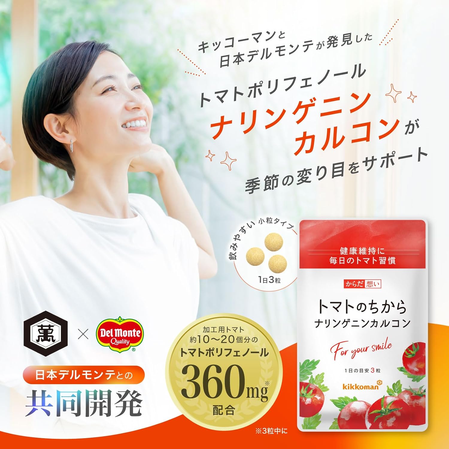 【キッコーマン公式通販】【メール便 送料当店負担 】 からだ想い トマトのちから ナリンゲニンカルコン 3袋(1袋 約1ヶ月分 90粒)