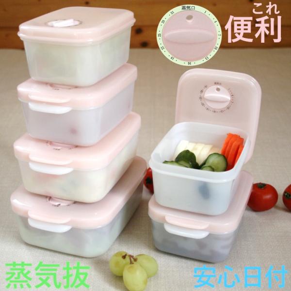 電子レンジ 保存容器 レンジ 容器 蒸気抜き 日付機能 食品容器 保存 スケルトンピンク・ホワイト 約380×2 440×2 550×1 770ml×1 6点 MORII 日本製 M-523-63