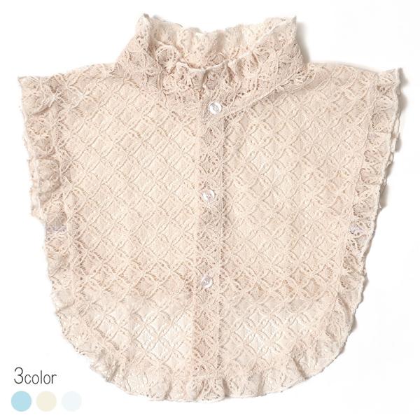 付け衿 レース 全3色 フリル 白 ベージュ 水色 スタンドカラー 立ち襟 和洋折衷 フェミニン モダン カジュアル 和装 小物 付け襟