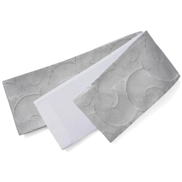 半幅帯 美術サロン 渦美 シルバー 銀 シンプル 幾何学 変わり織り シック 細帯 長尺 半巾帯 リバーシブル シンプル 浴衣 着物