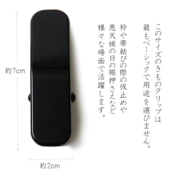 大き目のサイズでホールド力抜群。クリップの内側には奥までゴムで覆われているから大切なお着物を傷めません。