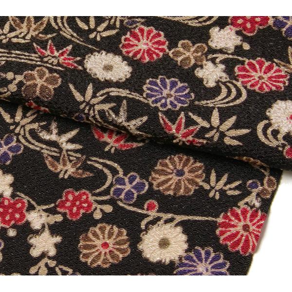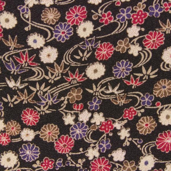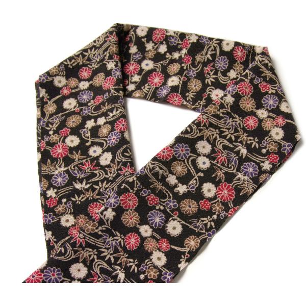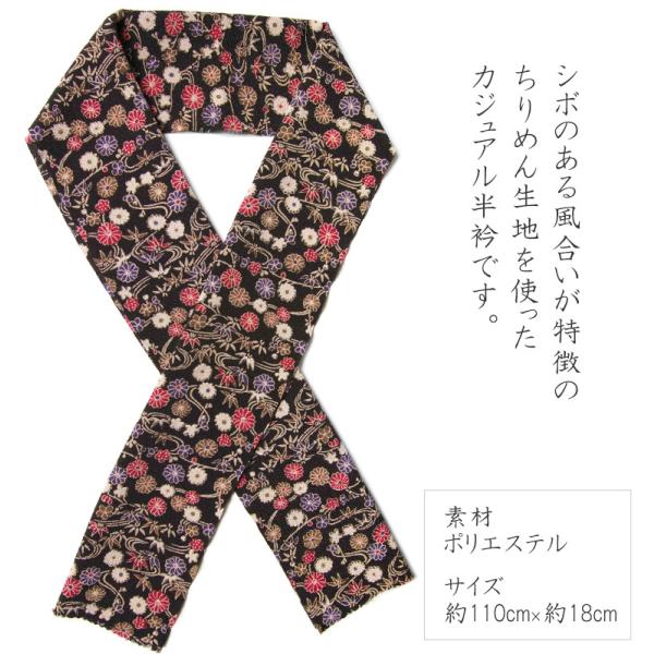 半衿 菊流水 黒 ベージュ えんじ ちりめん 洗える 伝統文様 レトロ シック 和装小物 半襟 着物 成人式 卒業式 袴 晴れ着