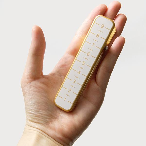 リバーシブルデザインの片面には長さの目安になるメモリが配されており、様々な場面で便利に使う事が出来ます。