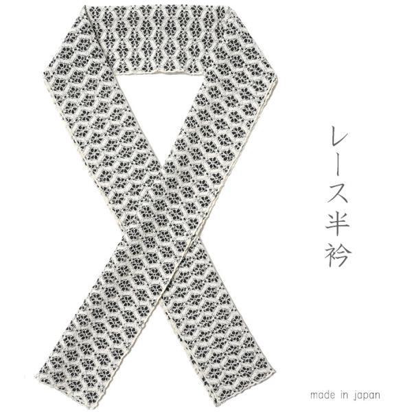 レース半衿 小花 黒 オフホワイト カジュアル シック 日本製