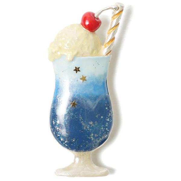 帯留め ブローチ クリームソーダの夜 青 星 アイスクリーム 夏 ラメ メルヘン ハンドメイド 和装小物 ピューター SUU Palnart Poc パルナートポック