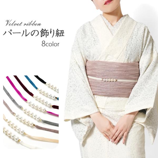 飾り紐 ベロア リボン パール イミテーションパール ニュアンスカラー エレガント フェミニン 帯飾り 帯締め 着物 浴衣
