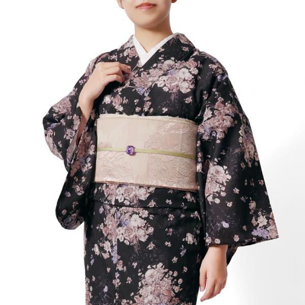 着物 セオアルファ 単衣 アンティークフラワー 黒 ピンク フェミニン モダン 仕立て上がり 単品 カジュアル レディース ポリエステル 春 夏 秋