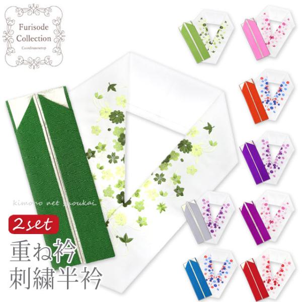 刺繍半衿 重ね衿 2点セット 四季花流し カラー 半襟 半衿 振袖 重ね襟 伊達衿 重ね衿 振袖 成人式 前撮り 結婚式 卒業式 振袖