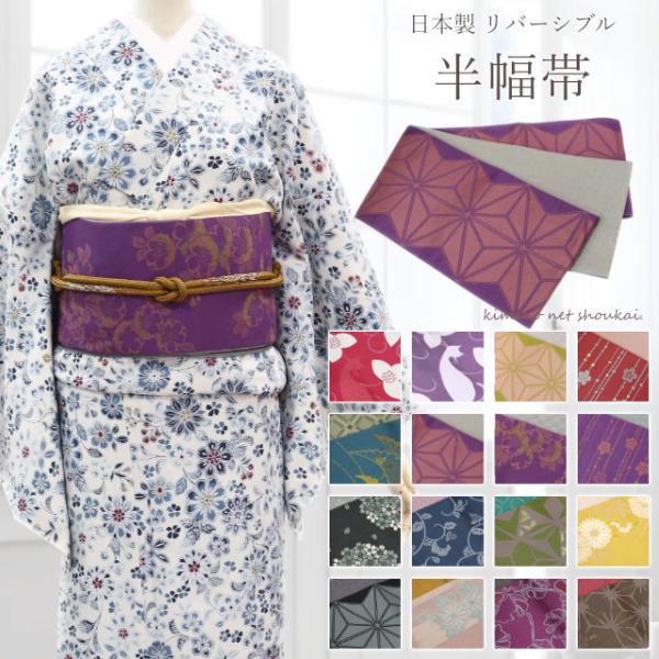 半幅帯 半巾帯 リバーシブル 和柄 15721 日本製 レディース 細帯 小袋帯 カジュアル ポリエステル 着物