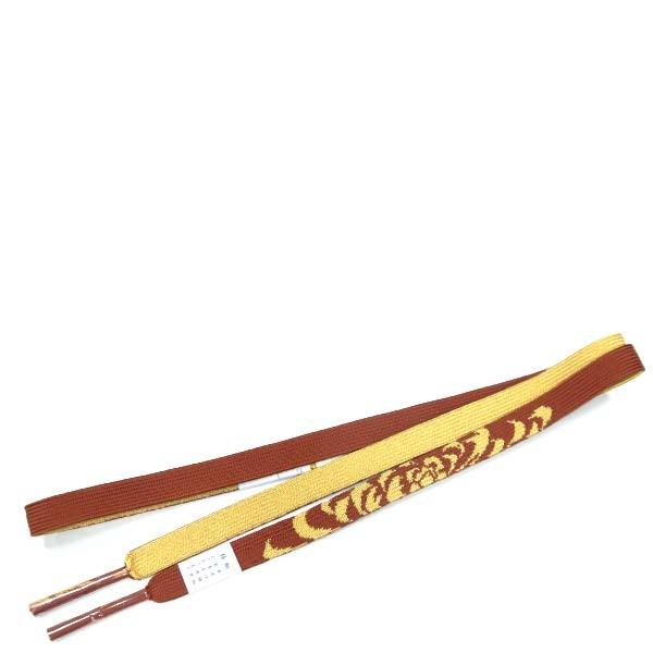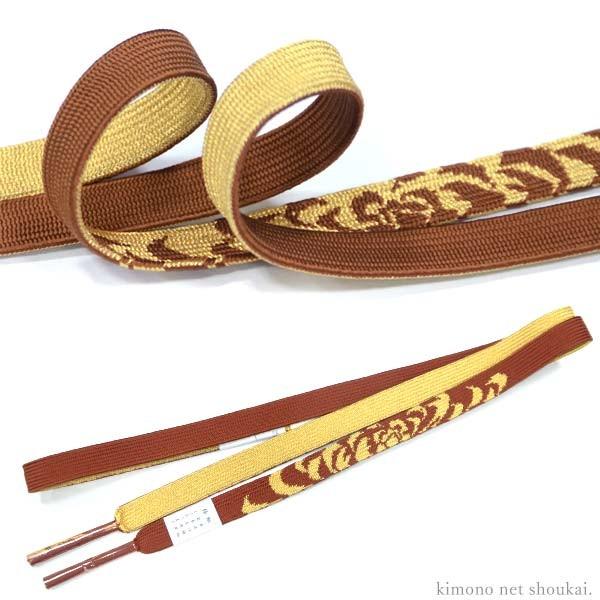 振袖用 正絹帯締め(金襴平織り/ブラウン 茶色 大菊 15041)帯じめ おびじめ 振袖 結婚式 成人式 古典