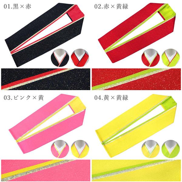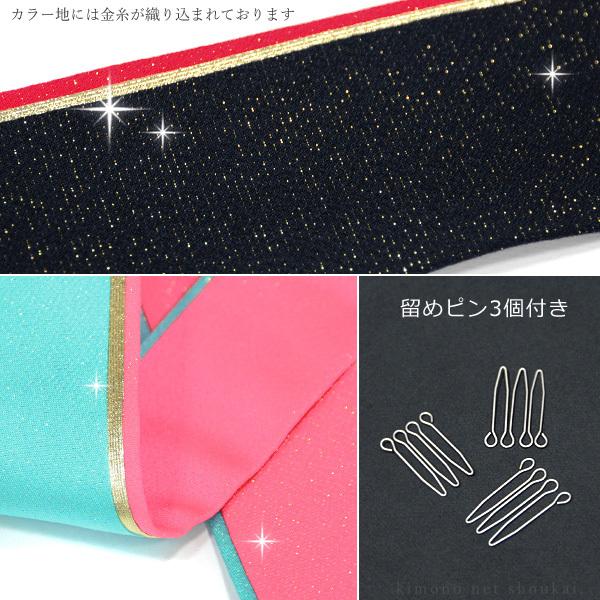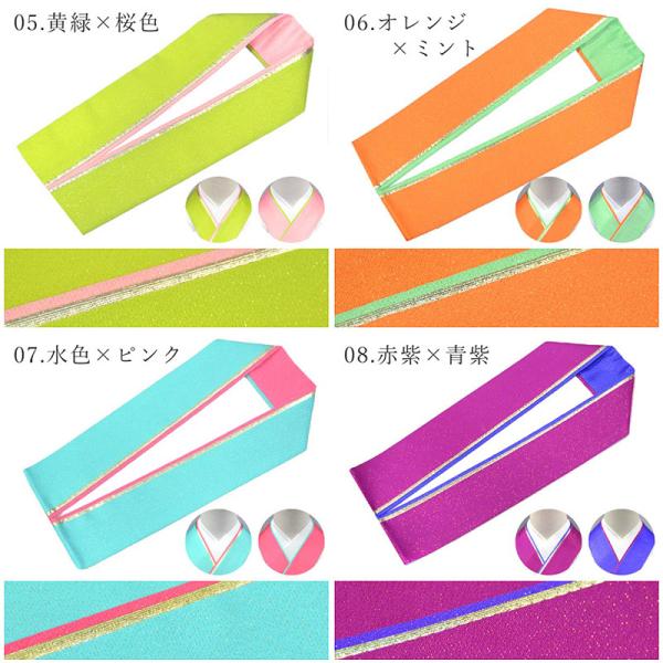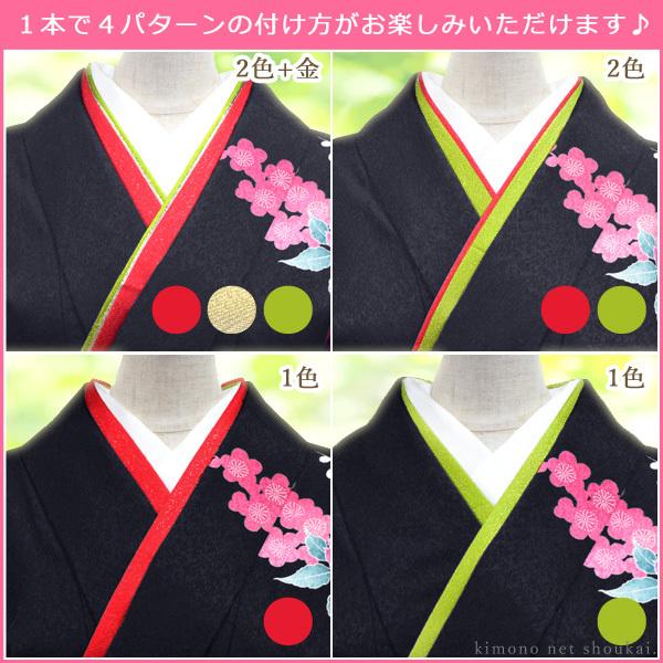 振袖・卒業式の袴をお召しになられた際に、1本プラスするだけで華やかなカラーとゴールドの挿し色の3色使いで豪華な衿元になります!