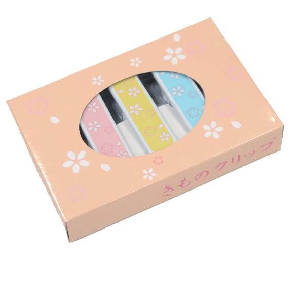 きものクリップ3色3個セット。両面に可愛らしい桜の柄が入っております。