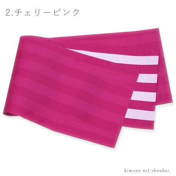(半幅帯 浴衣帯) 単衣 無地×ストライプ リバーシブル 15487 日本製 細帯 袴 ゆかた 半巾帯 卒業式 袴