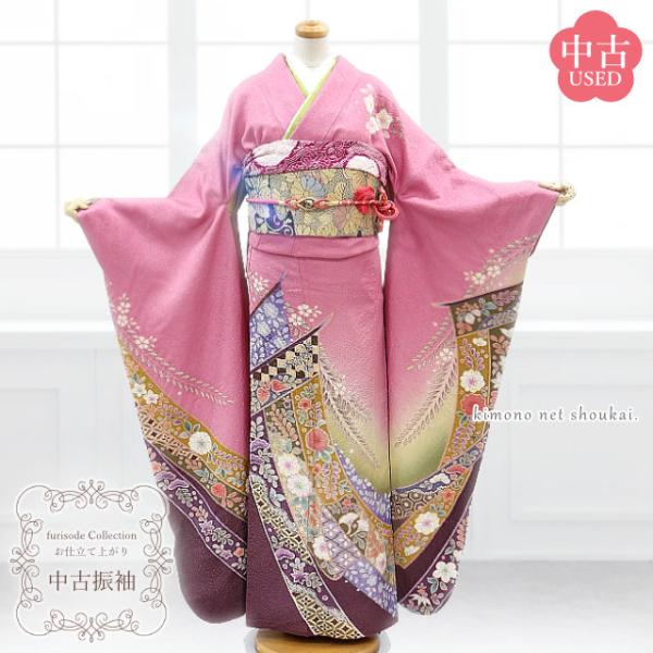 刺繍半襟 半衿(絹交織 白×ピンク 紫 桜松扇面 15040)日本製 はんえり 振袖 袴 成人式 謝恩会 フォーマル